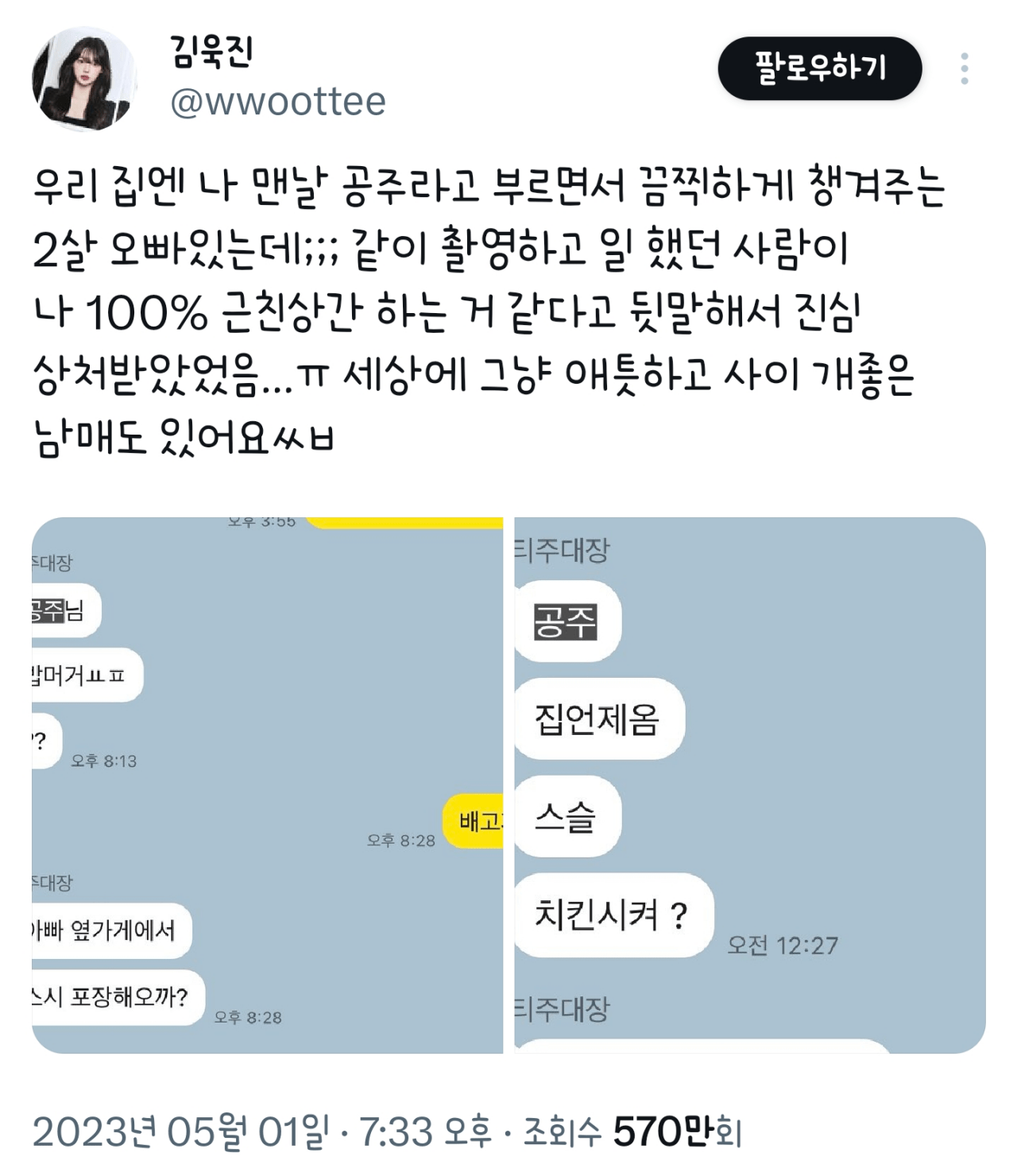 오빠랑 근친이냐고 뒷말들어서 슬픔