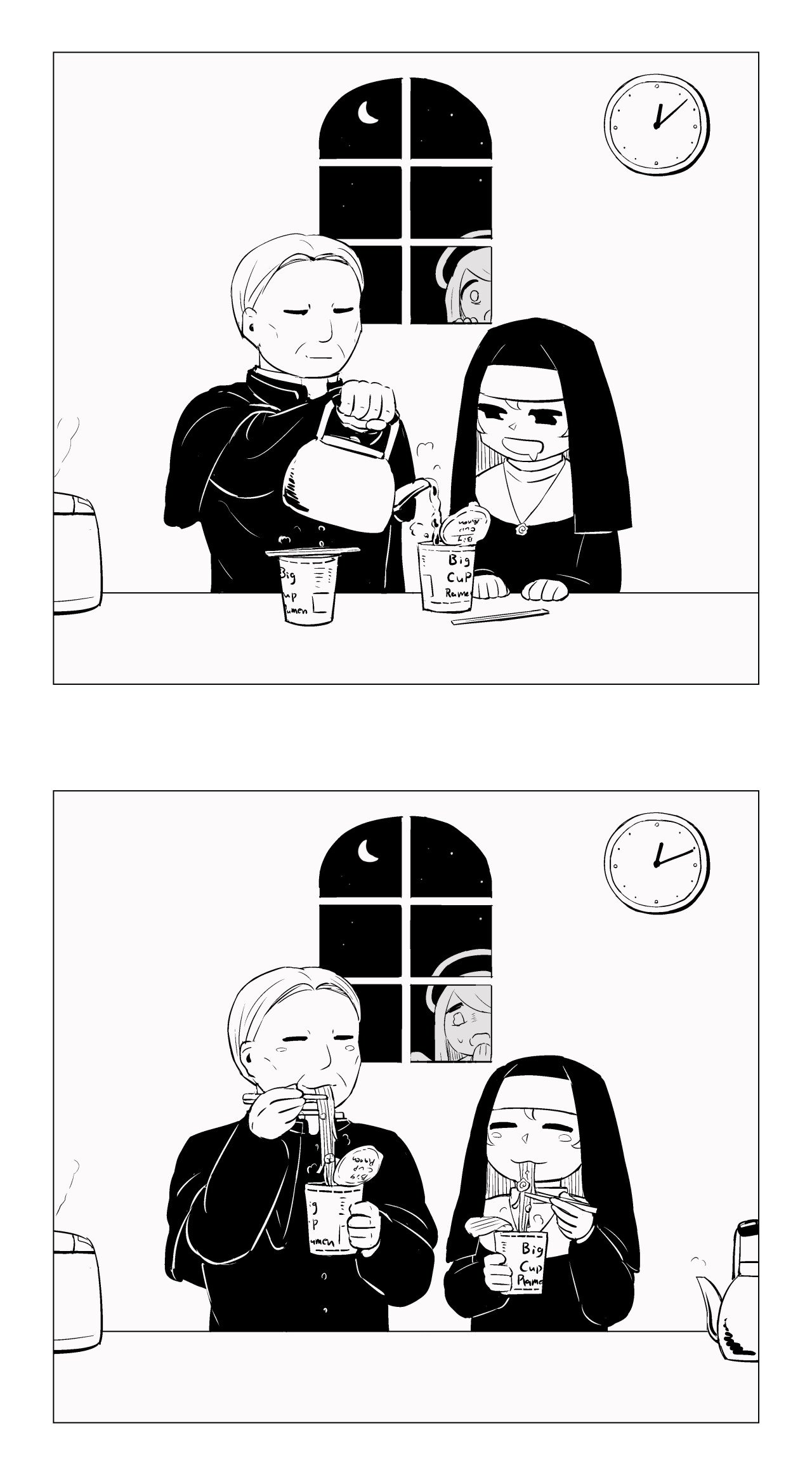 야밤에 성직자 둘이서 배가 불러오는 행위를