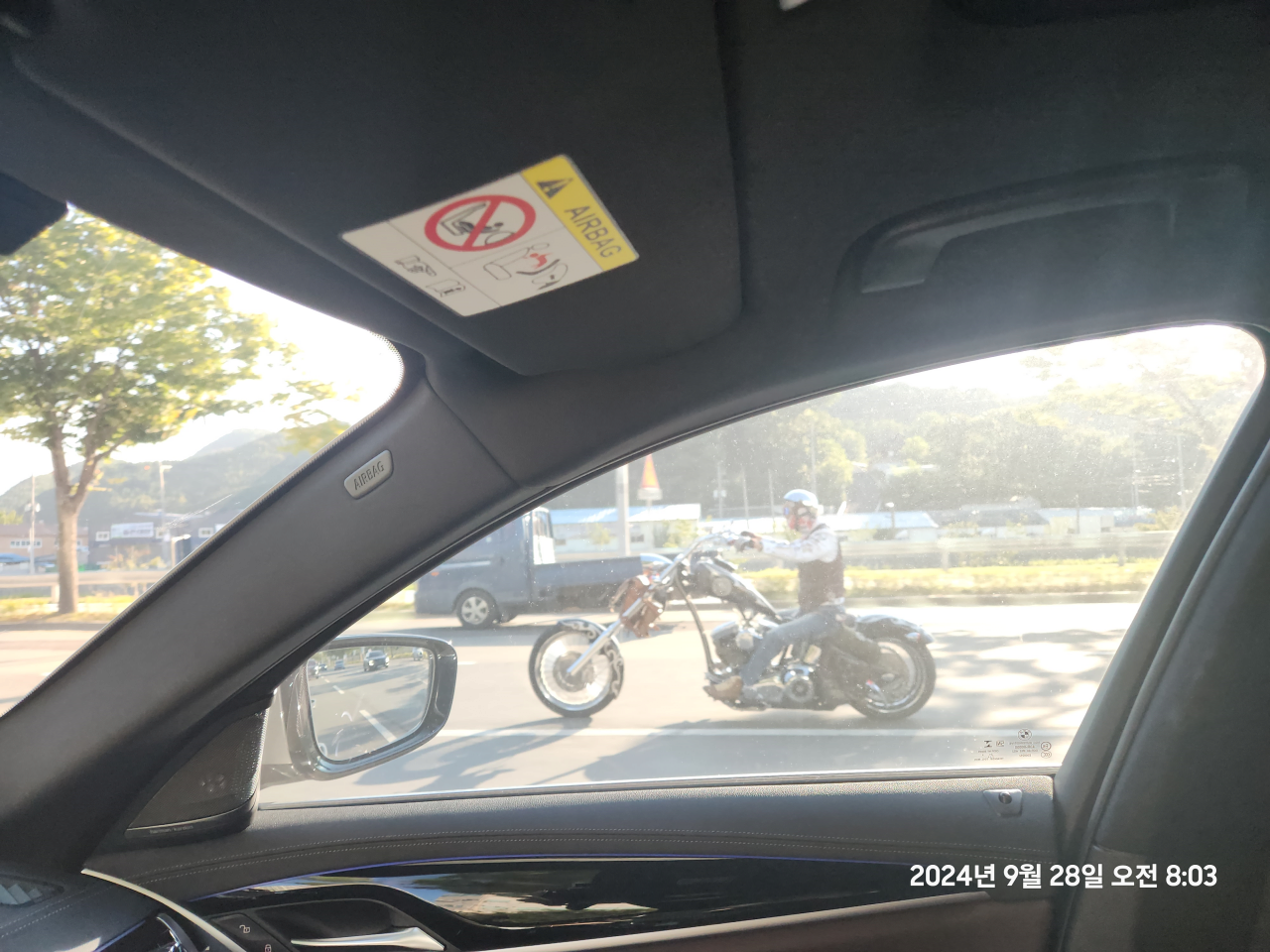오토바이 앞바퀴가 저리 멀리 떨어져있는데
