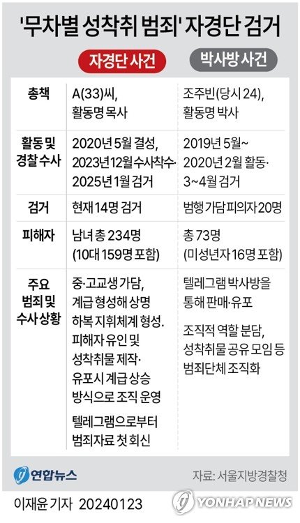 피해자 234명 중 10대가 159명, 20대 이상이 64명이었으며 남성 성 착취 피해자는 총 84명이었다.