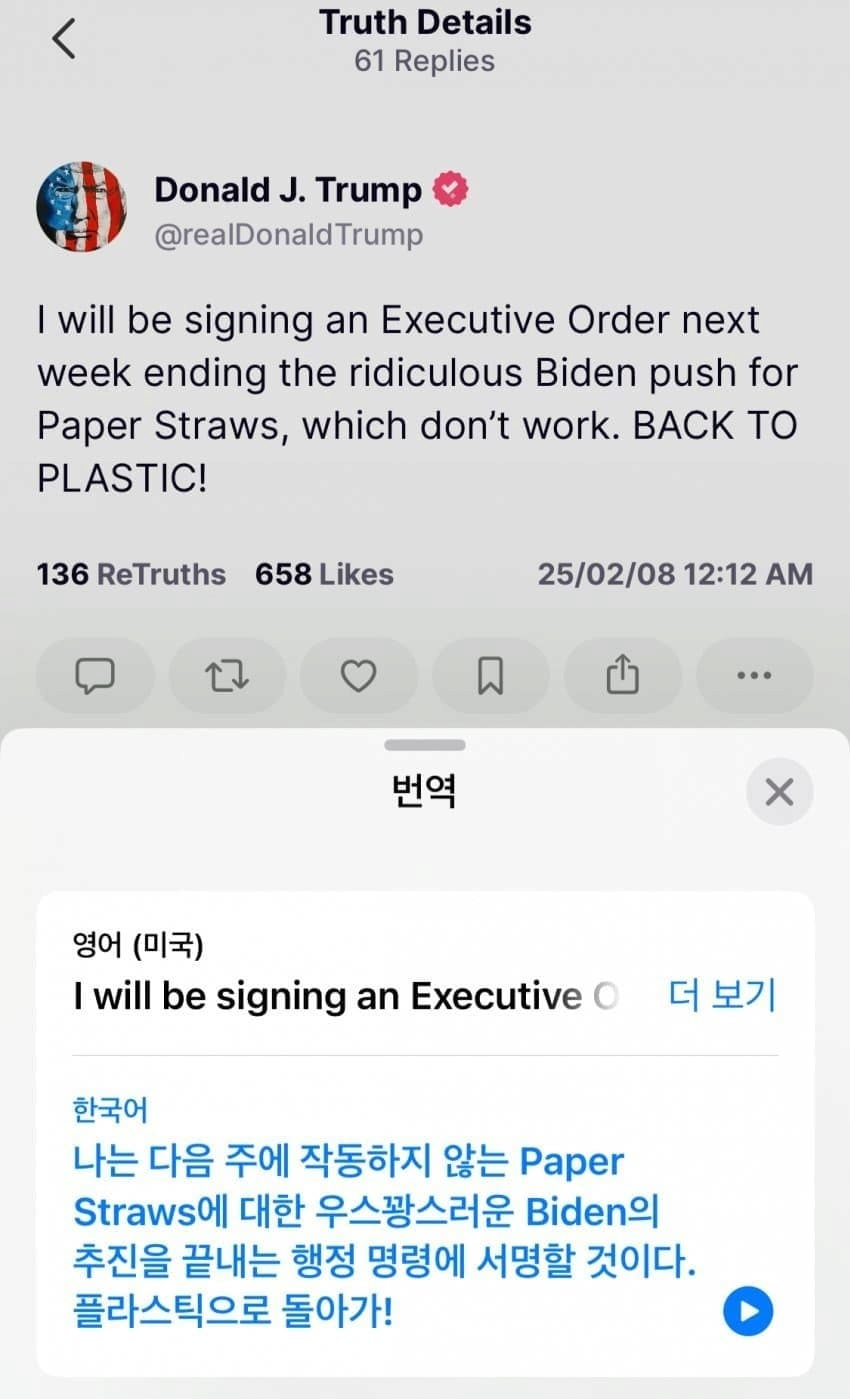 대럼프 종이빨대 금지 ㅋㅋㅋㅋㅋ