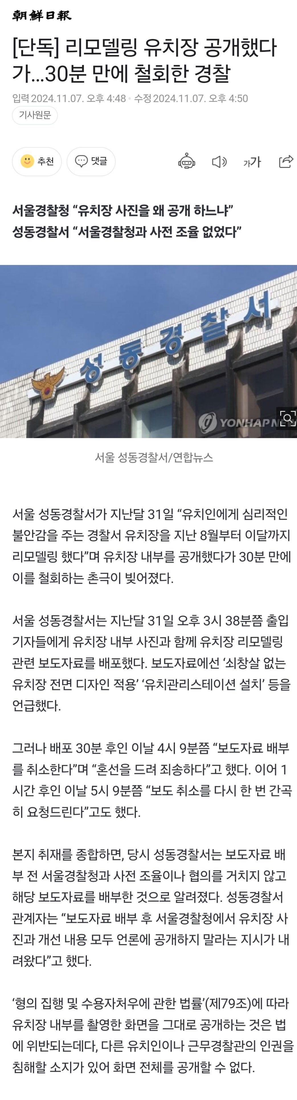 [단독] 리모델링 유치장 공개했다가…30분 만에 철회한 경찰