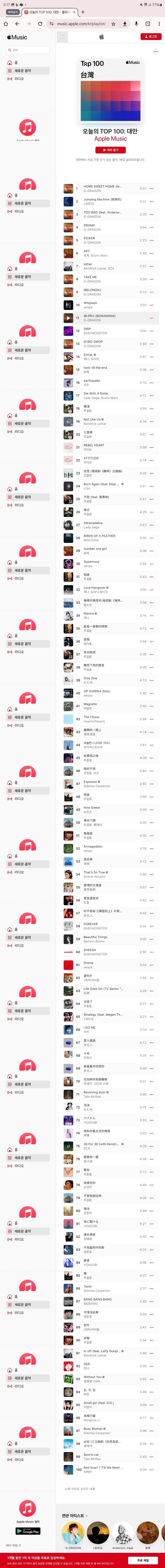 애플뮤직 대만차트 지드래곤 위엄