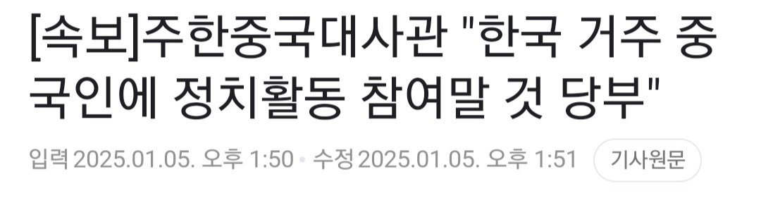 [속보]주한중국대사관 "한국 거주 중국인에 정치활동 참여말 것 당부"