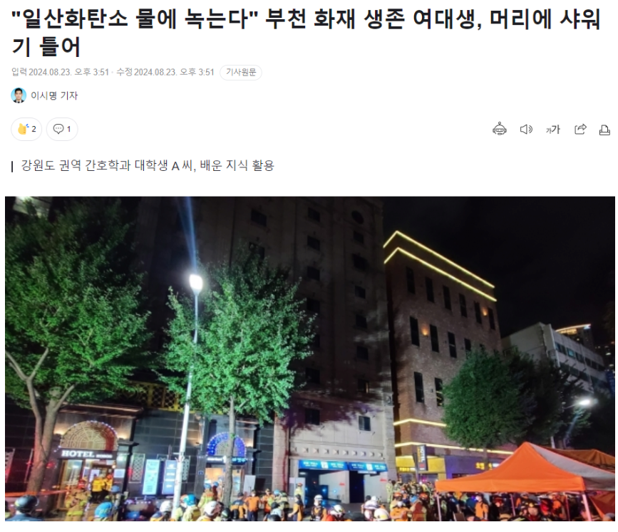 부천 화재, 샤워기로 일산화탄소 녹여 생존한 여대생 관련 사실 확인