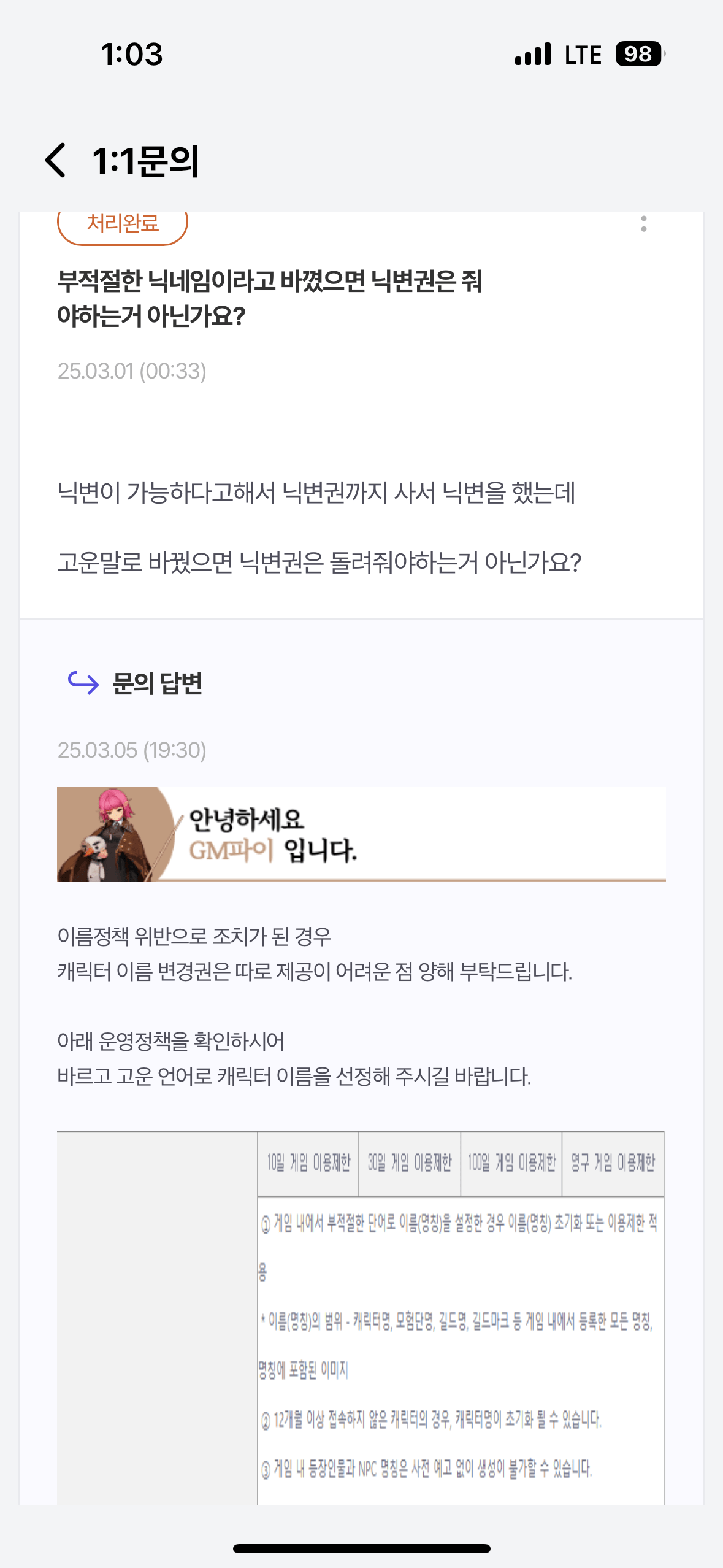 운영자가 갑자기 유저 닉네임이 부적절하다고 바꿔버림