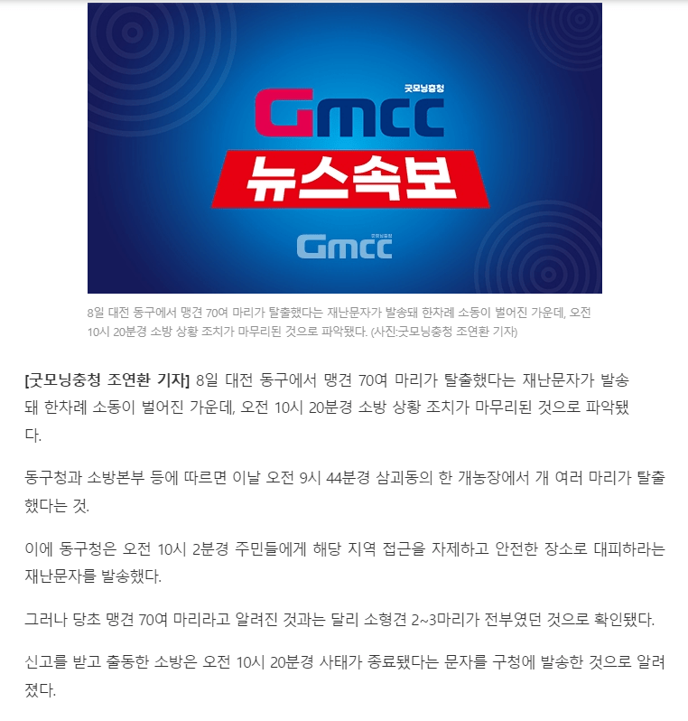 [속보] 대전 동구 맹견 70마리 탈출 소동 '일단락'