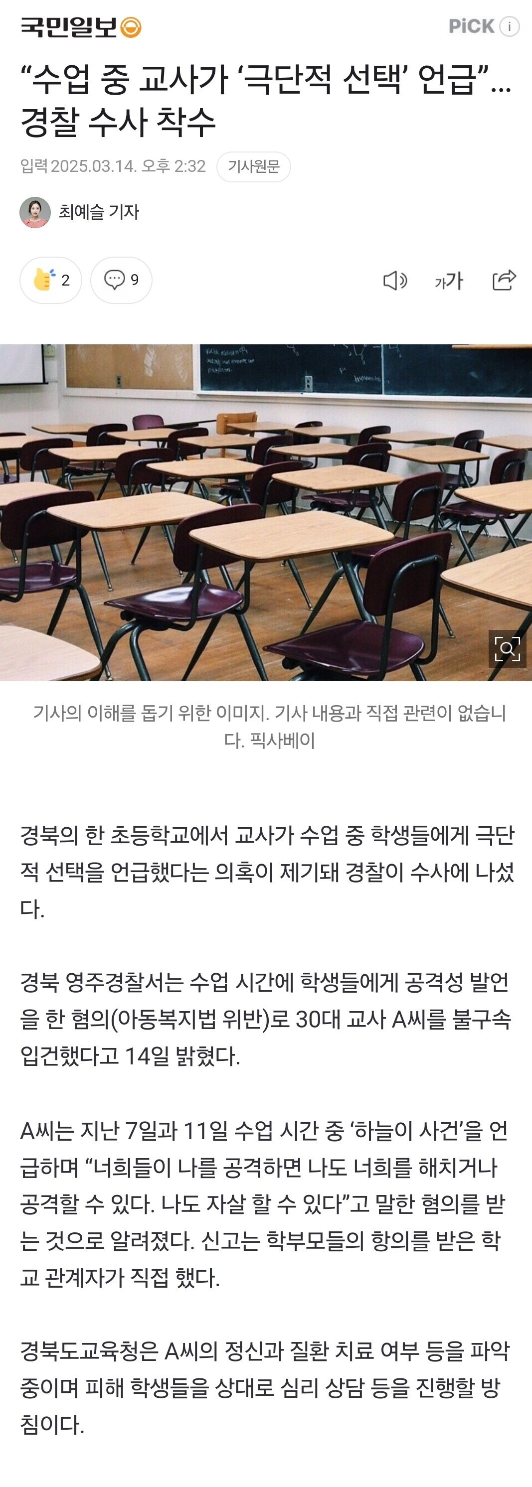 "수업 중 교사가 '극단적 선택' 언급" 경찰 수사 착수