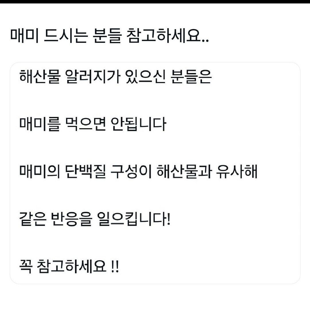 해산물 알러지가 있는 우리 펨붕이들도 조심하자고