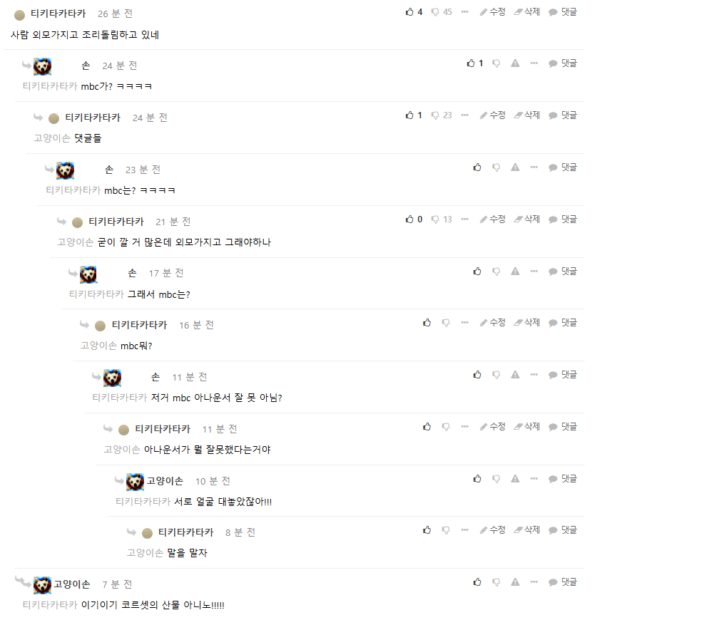 욕설이나 비방 목적의 댓글은