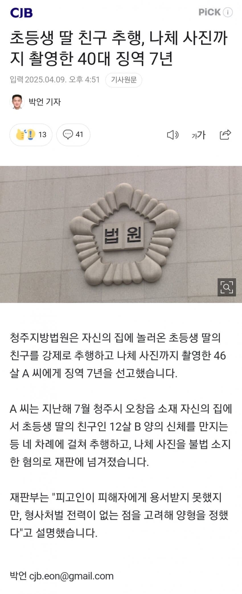 초등생 딸 친구 추행, 나체 사진까지 촬영한 40대 징역 7년