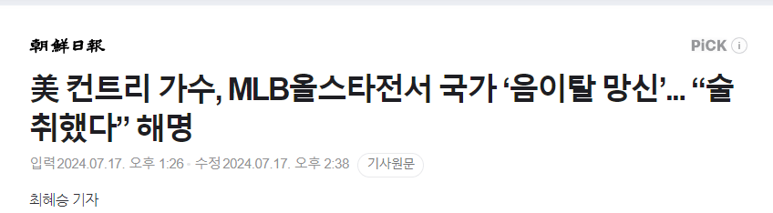 MLB올스타전서 국가 ‘음이탈 망신당한 인기 가수