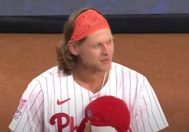 인그리드 안드레스의 국가를 듣고 웃고 있는 필라델피아 선수./ 유튜브