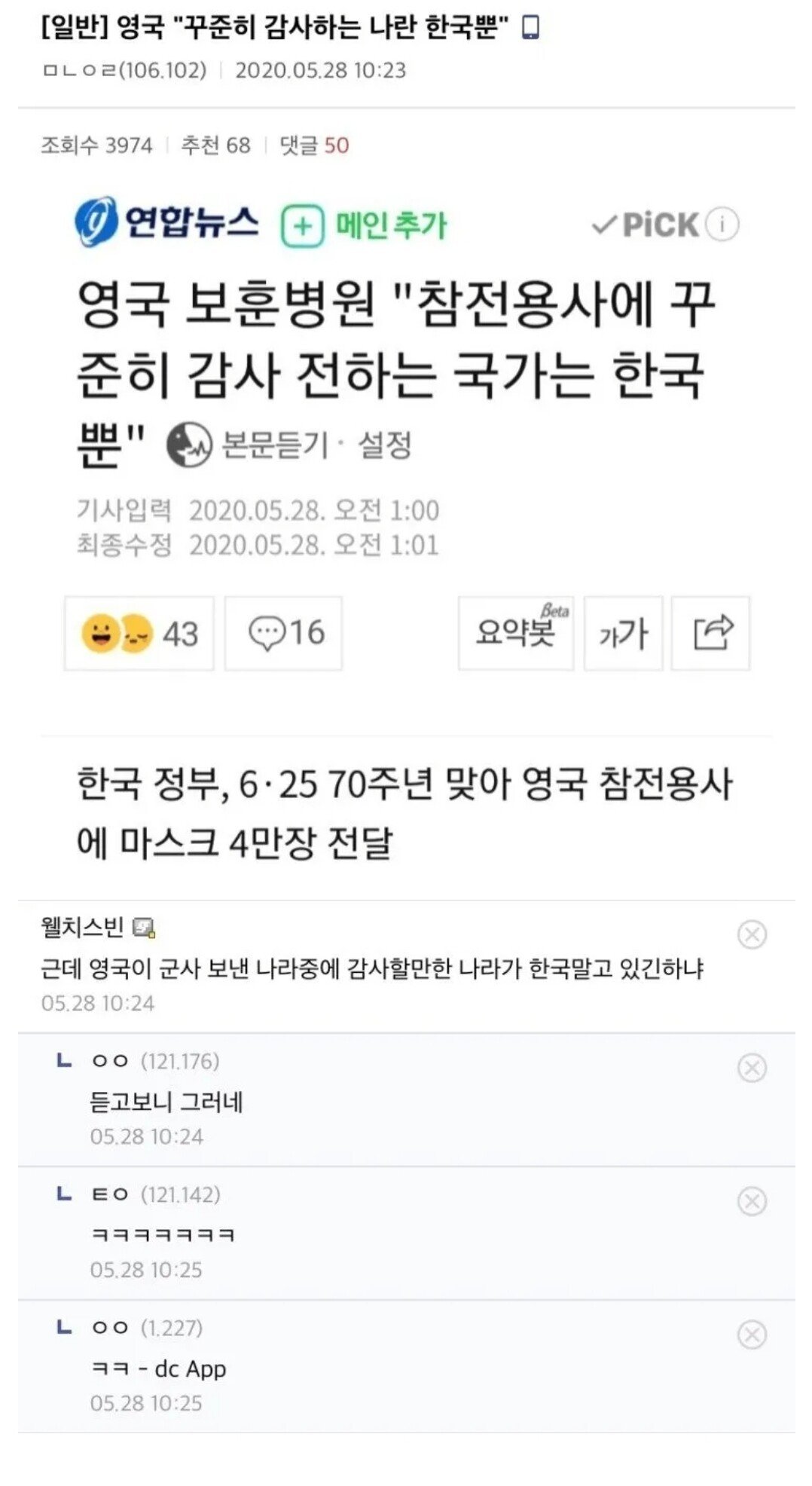영국 "참전용사들에 꾸준히 감사 전하는 국가는 한국뿐".jpg