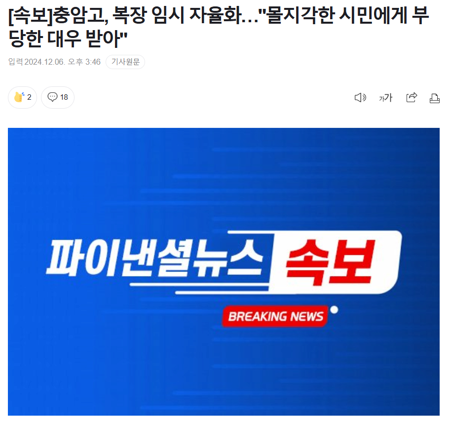 [속보]충암고, 복장 임시 자율화…"몰지각한 시민에게 부당한 대우 받아"