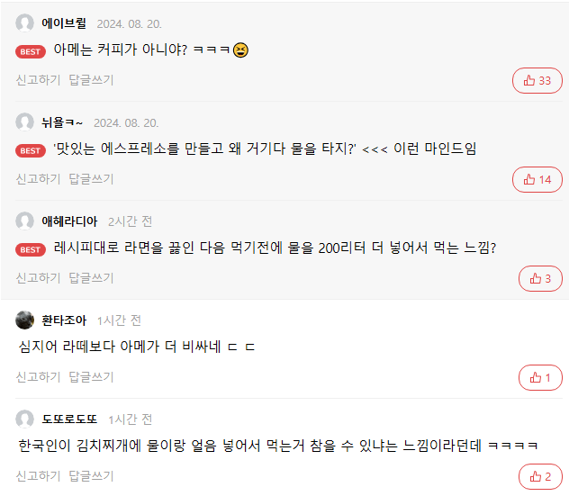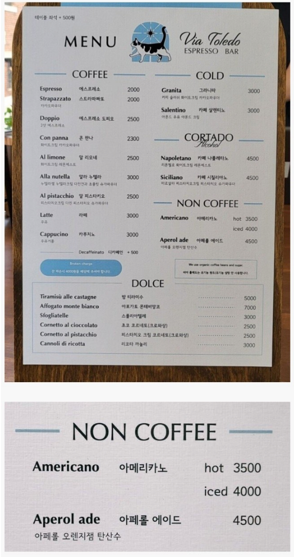 아메리카노는 'Non Coffee' 라고 분류해놓음 ㅋㅋㅋㅋㅋㅋㅋㅋㅋㅋ