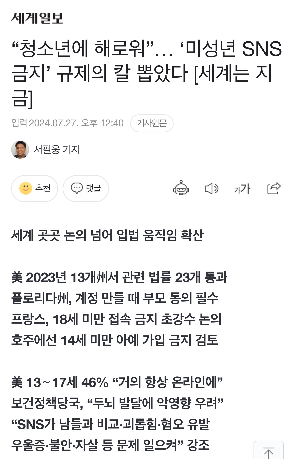 “청소년에 해로워”… ‘미성년 SNS 금지’ 규제의 칼 뽑았다 [세계는 지금]