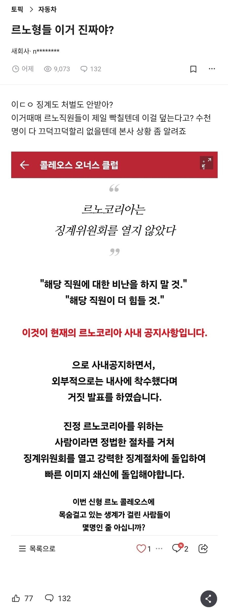 현재 난리났다는 르노 여직원 징계위원회 근황 ㄷㄷㄷㄷ