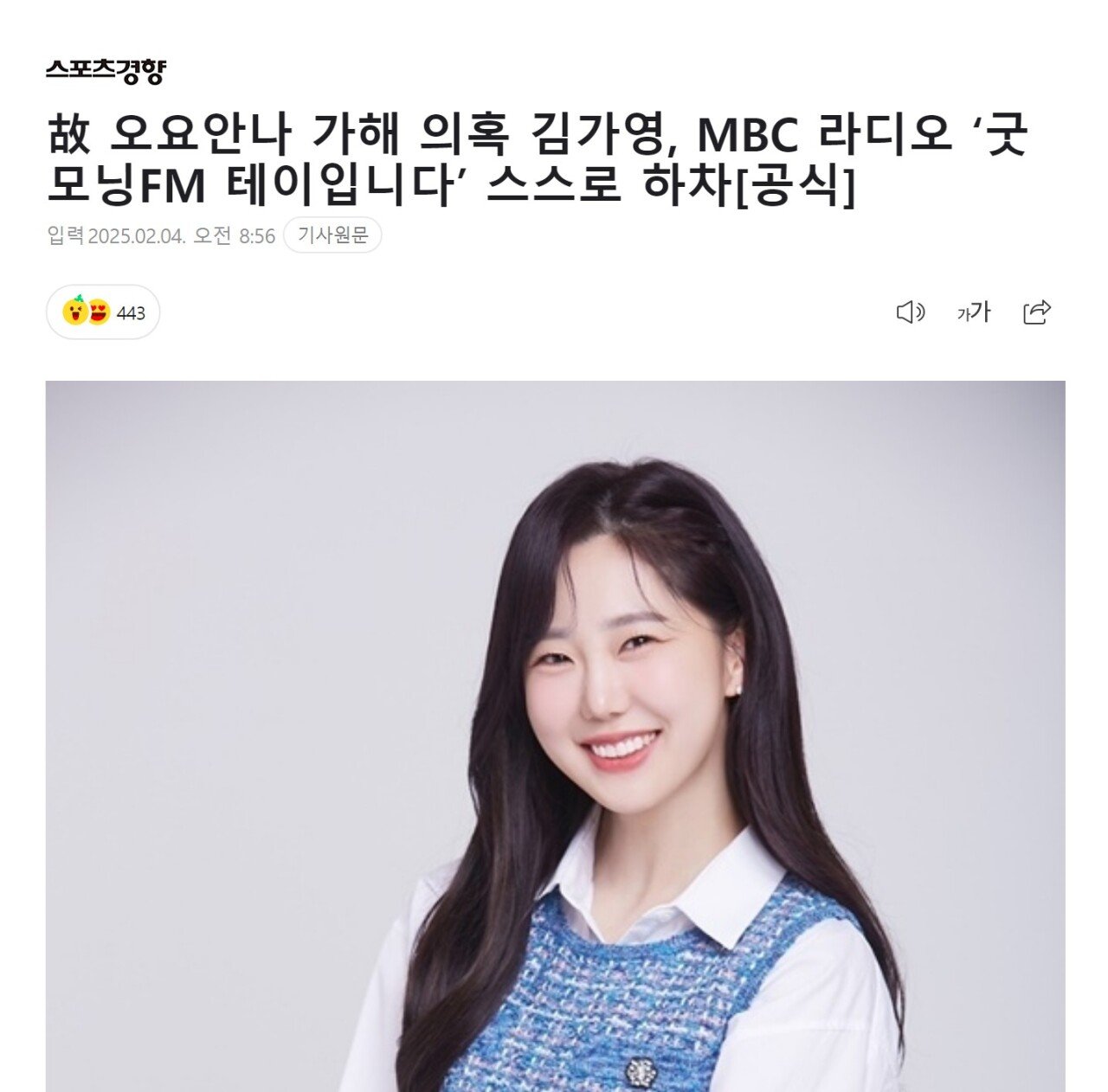 故 오요안나 가해 의혹 김가영, MBC 라디오 ‘굿모닝FM 테이입니다’ 스스로 하차