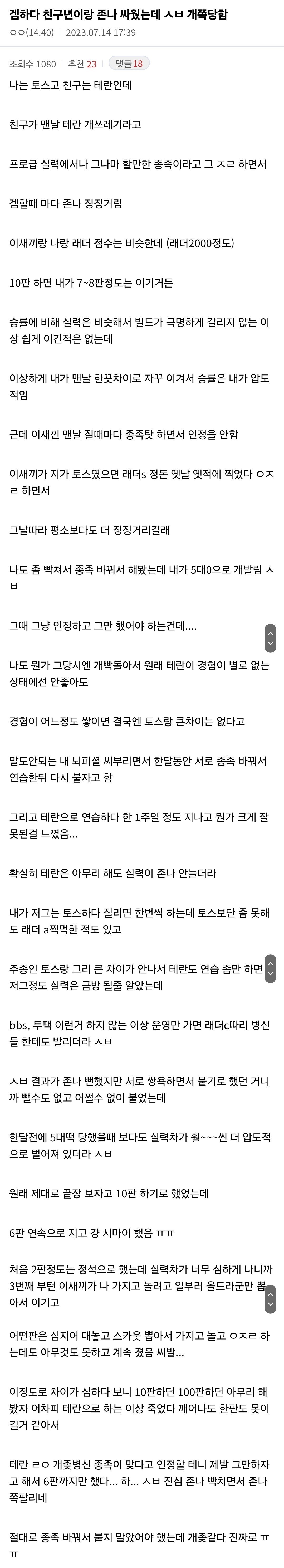 테란인 친구에게 개쪽당한 프로토스 유저 ㅋㅋㅋ