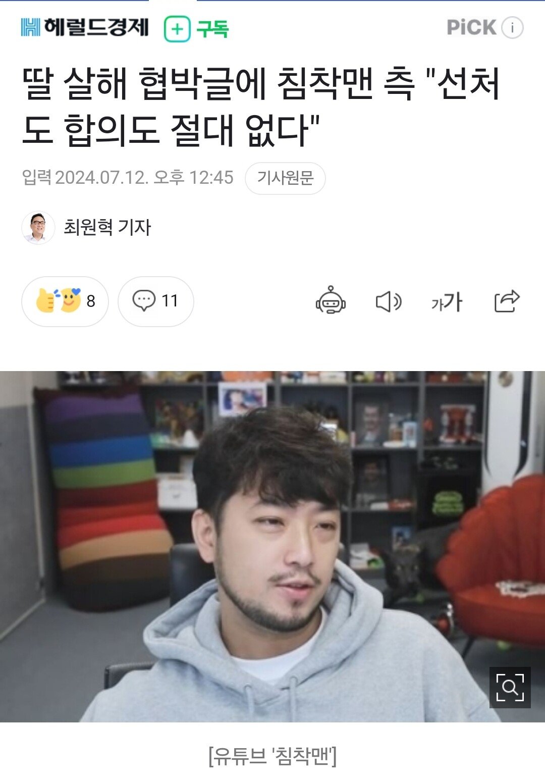 침착맨 "딸 살해 협박 디시글에 선처도 합의도 없다"