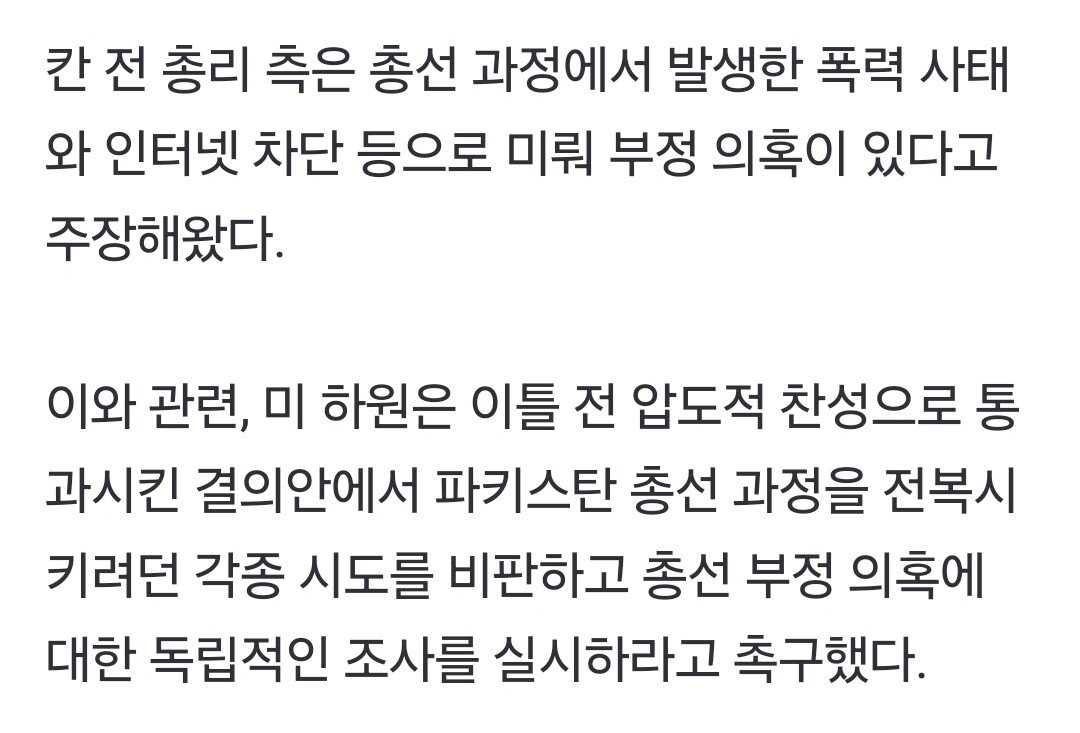 파키스탄, '총선 부정의혹 조사' 美하원 결의안에 "내정 간섭"