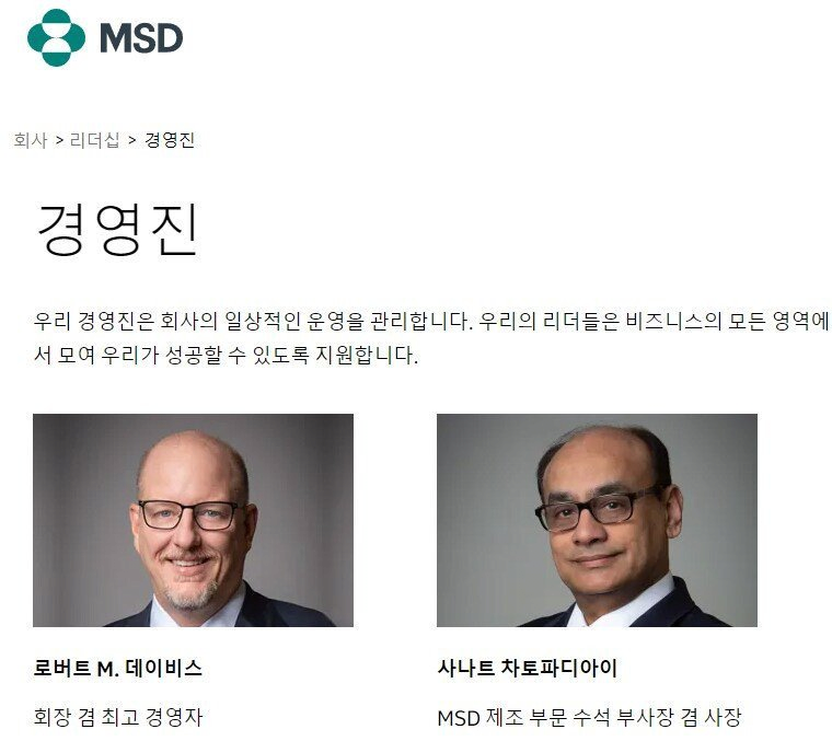 탈모 치료제 회사 프로페시아 경영진