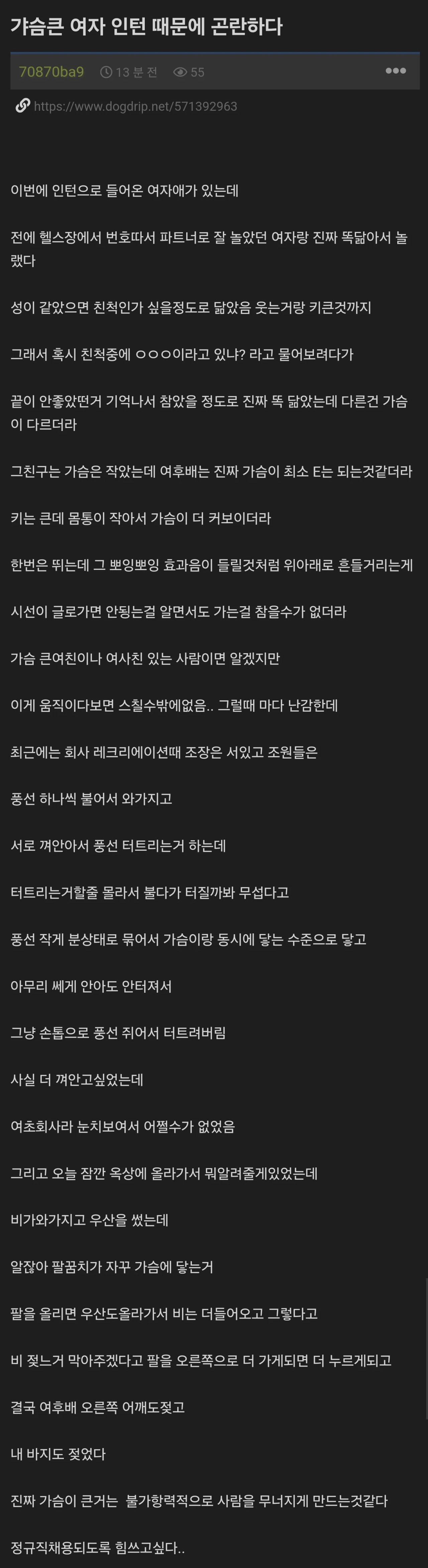 가슴 큰 여인턴 때문에 곤란하다는 개붕이.txt