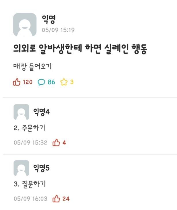 의외로 알바한테 하면 실례인 행동