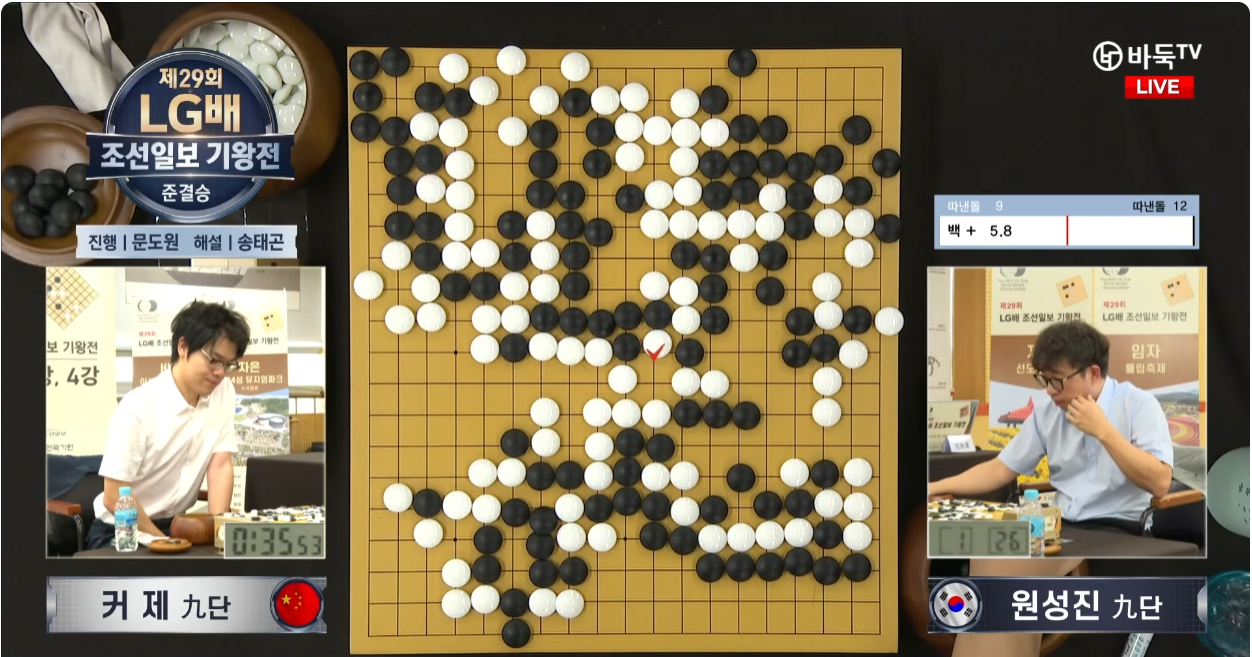 중국바둑기사 커제9단이 최근 농심배에서 시간패 당하고, 각종 대회에서 부진하는등 중국랭킹1위에서 5위까지 떨어졌지만 이번 LG배에서 원성진9단에게 승리하면서 25회 LG배 이후로 4년만에 세계대회 결승전에 진출함