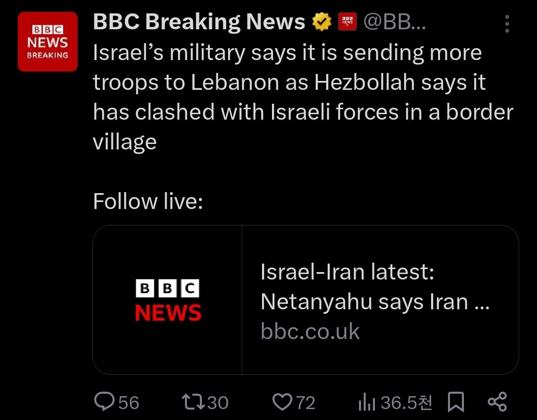 [속보] 이스라엘군, 레바논에 더 많은 병력 파견