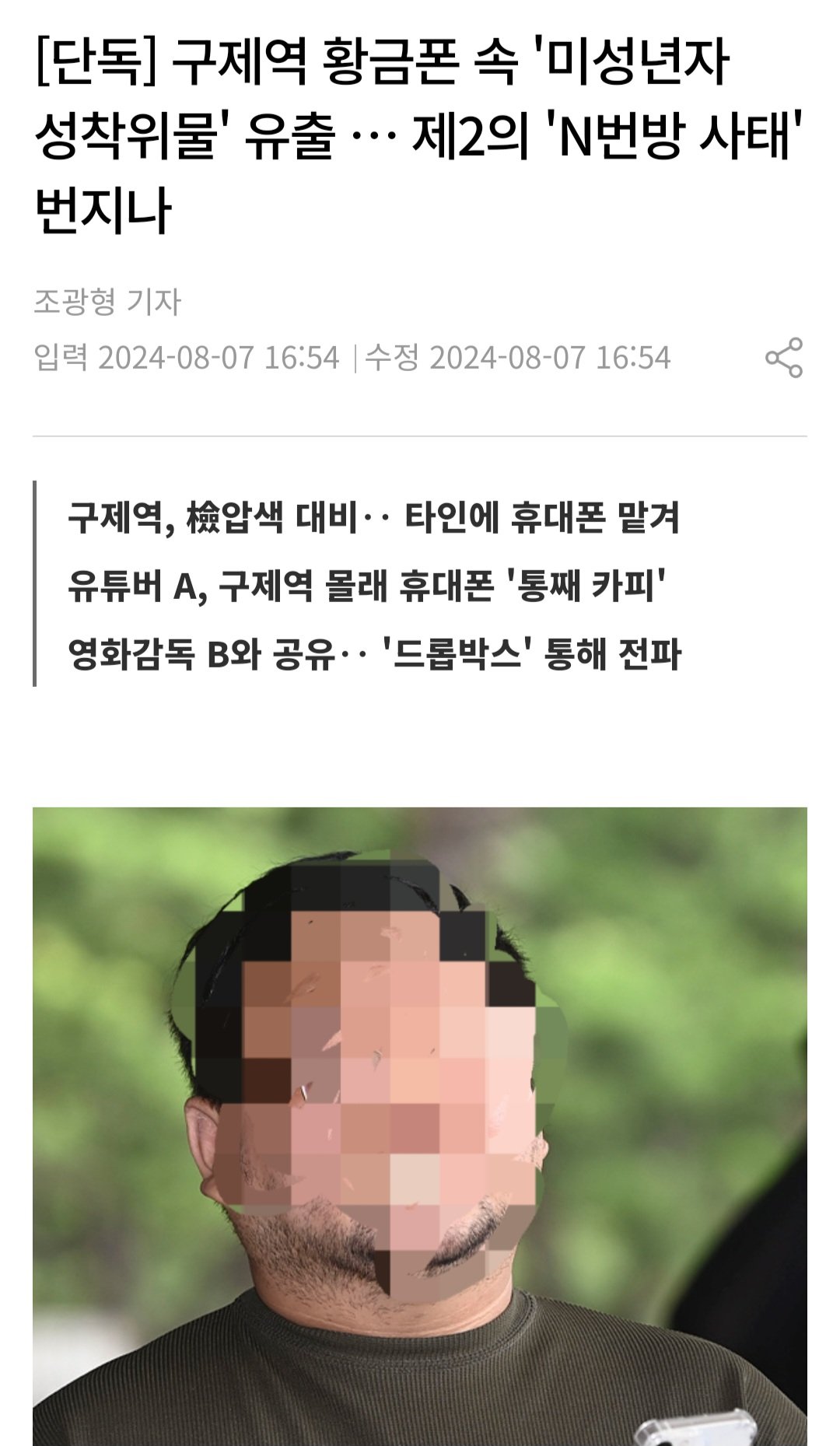 유출된 구제역의 휴대전화 저장파일에는 녹취파일, 법원 판결문 등 다수의 제3자 개인정보를 비롯해 미성년자를 포함한 여성들의 나체 사진(성착취 음란물)도 다량 들어 있어 추가 피해가 우려되는 상황이다.