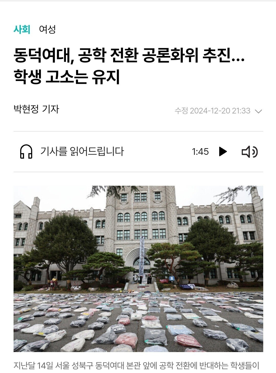 동덕여대 공학전환 공론화위 추진, 고소는 유지 jpg