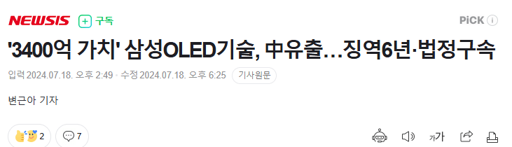 '3400억 가치' 삼성OLED기술, 중국 유출…전직 수석연구원 징역6년·법정구속