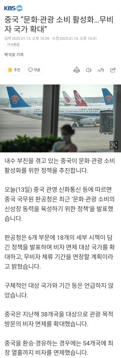 중국 “무비자 국가 확대”