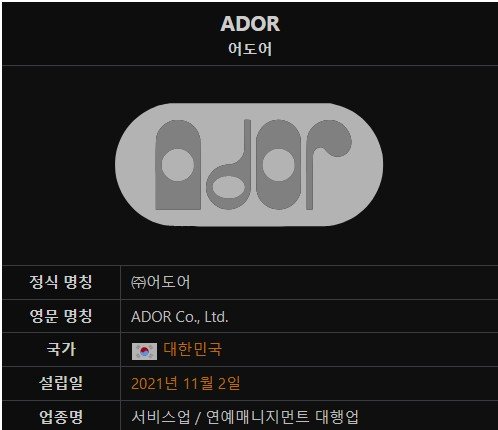 어도어의 설립일은 2021년 11월 2일로 나와있다