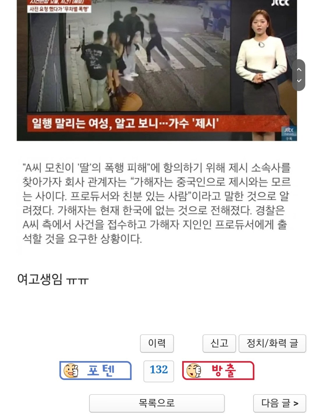 방금 포텐에 삭제된 폭행피해자가 여고생이라는 글