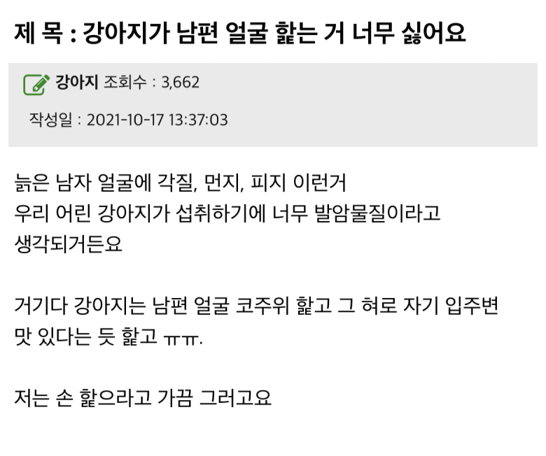 강아지가 남편 얼굴 핥는 거 너무 싫어요.jpg