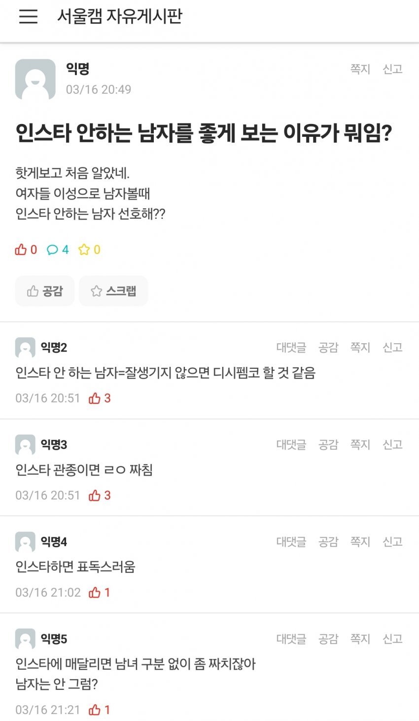 인스타 할거같은데 안하는 남자를 좋아하는것