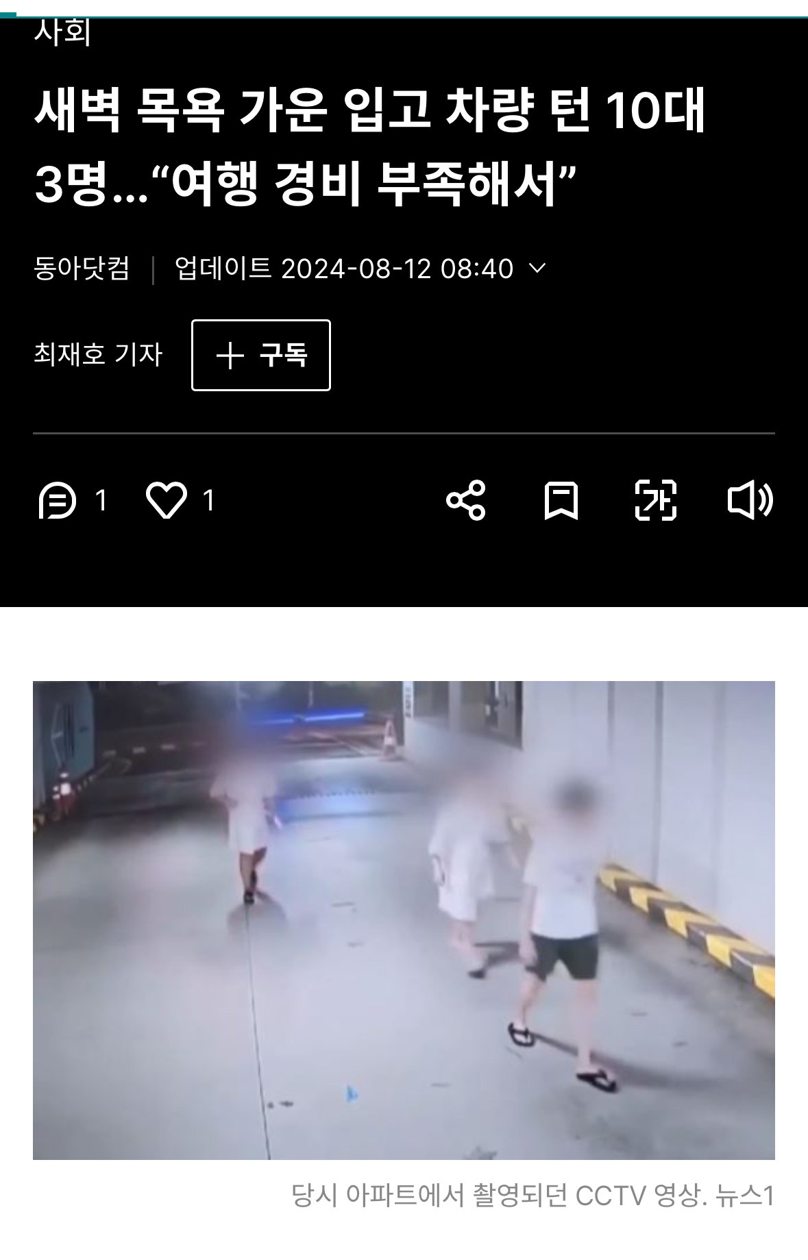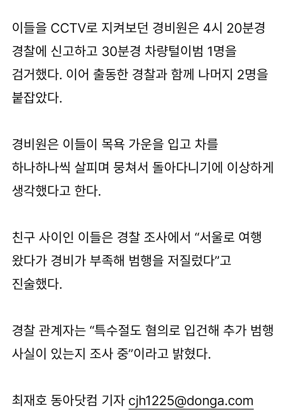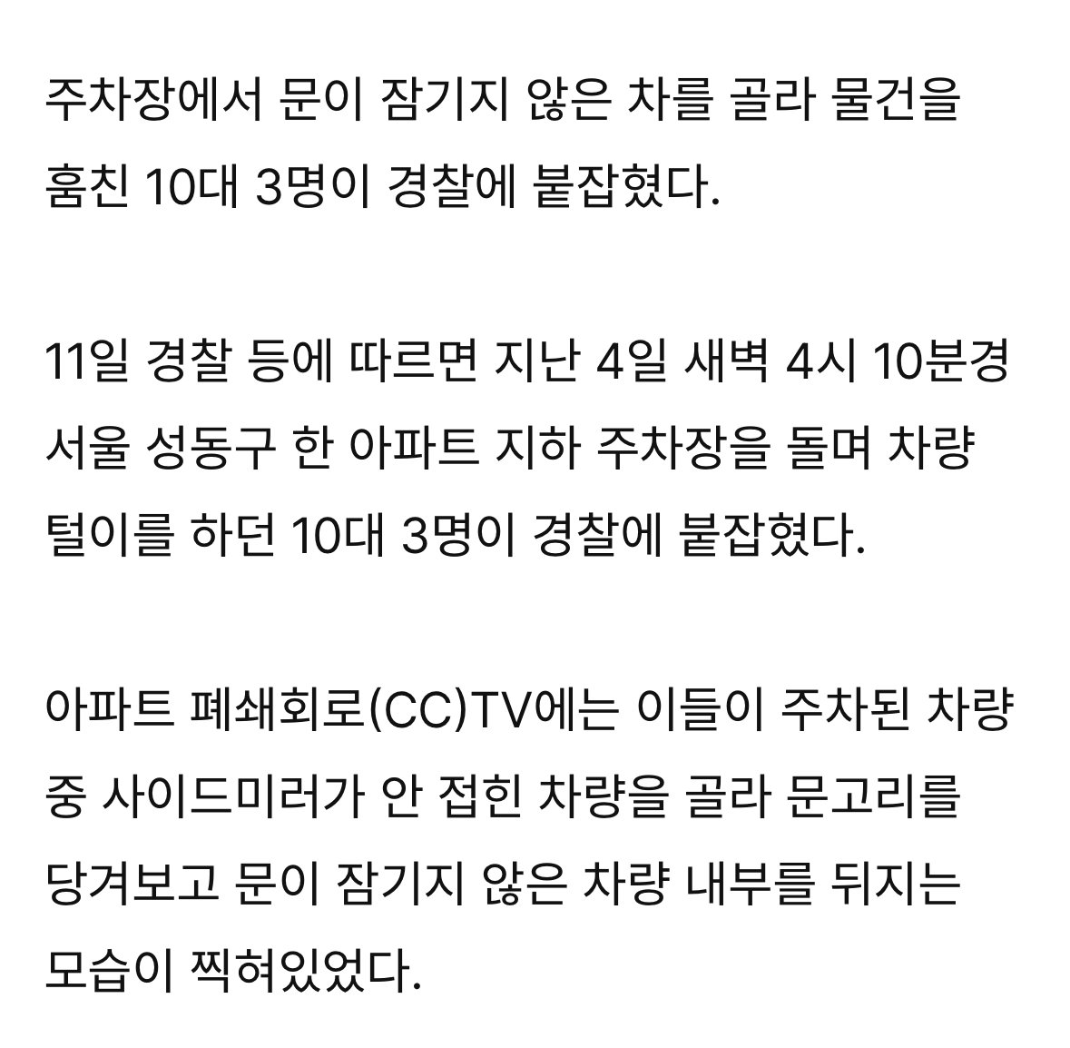 새벽 목욕 가운 입고 차량 턴 10대 3명…“여행 경비 부족해서”