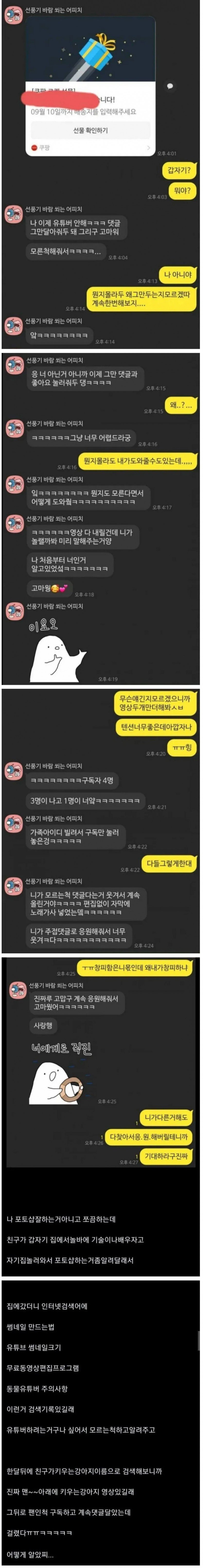 친구 몰래 유튜브에 댓글 꼬박꼬박 달아준 사람