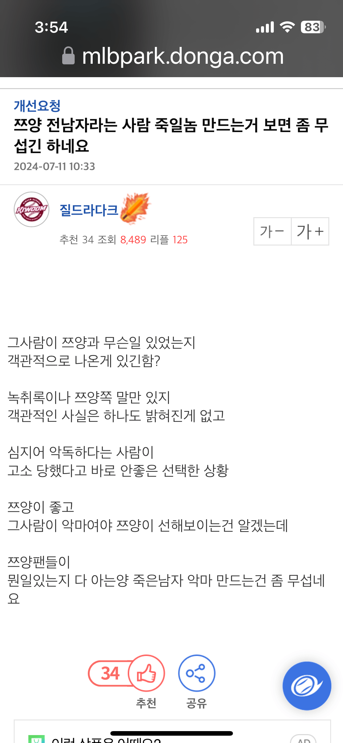 다른 사용자들에게 불쾌감을 줄 수 있는