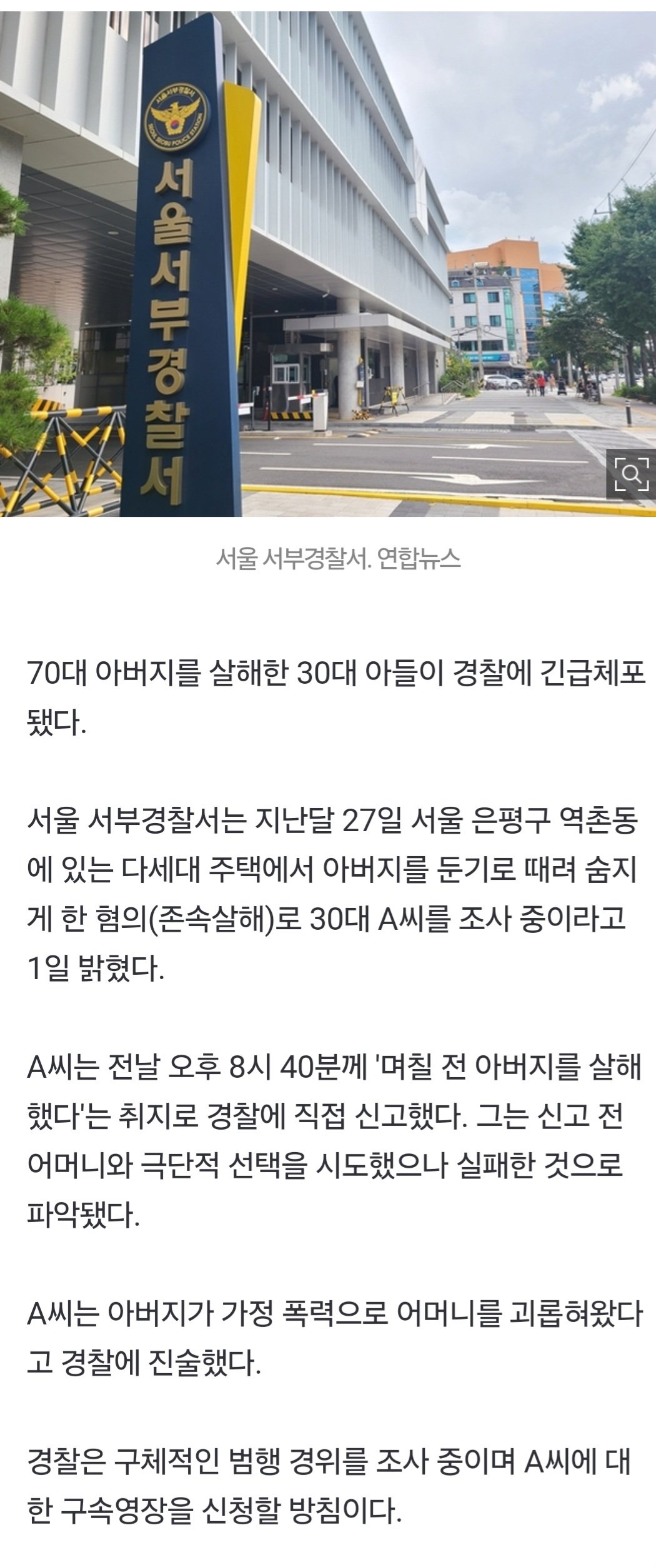 [속보] 70대 아버지 살해한 30대 아들 긴급체포