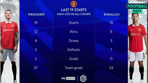 근19경기 맨유에서 베호르스트, 호날두 선발출전시 스탯