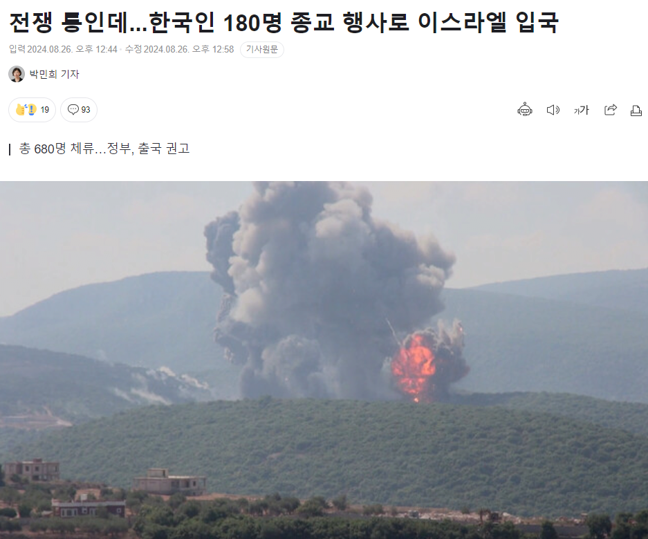 전쟁 통인데...한국인 180명 종교 행사로 이스라엘 입국