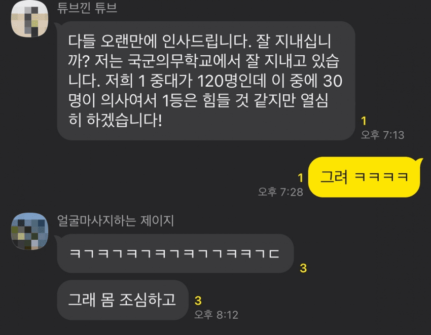 고등학교 멘토멘티 했던 친군데 ㅋㅋㅋㅋ 최근 연락한거 캡처