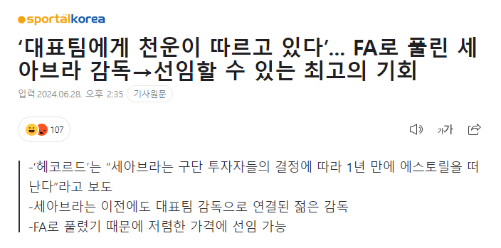 나 진짜 축알못인듯 처음 본 감독인데 FA된게 진짜 천운이 맞음??