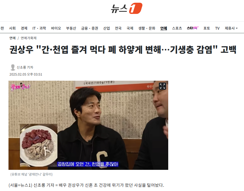 권상우 "간·천엽 즐겨 먹다 폐 하얗게 변해…기생충 감염" 고백