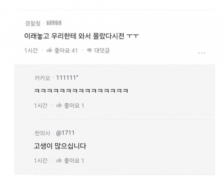 블라인드) 순수한 공무원 질문에 경찰좌의 대답