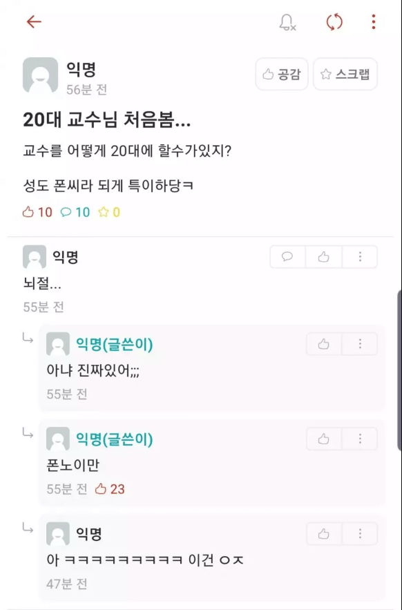 20대 교수님 처음봄